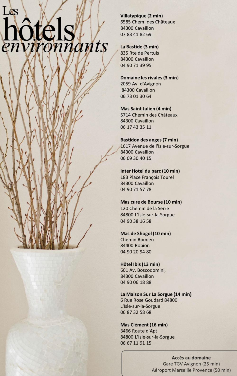 Nous avons à disposition une liste de Airbnb disponibles proches du domaine.