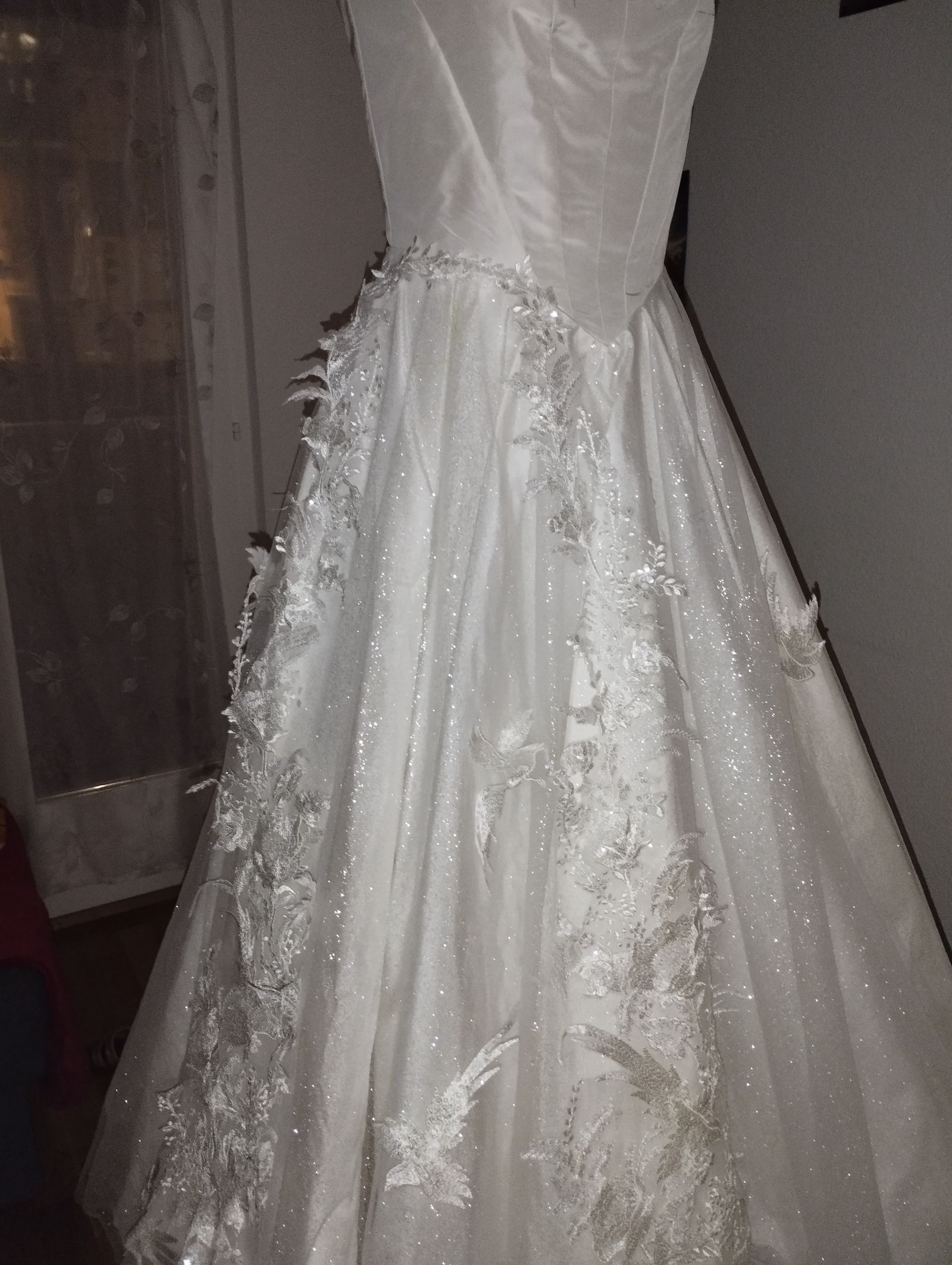 Et j'ai cousu chaque motif de dentelle à la main sur mes deux robes en soie...au total 220 heures de boulot en plus de mon travail habituel 🥲 mais une très grande satisfaction d'avoir réussi à terminer la robe de mes rêves